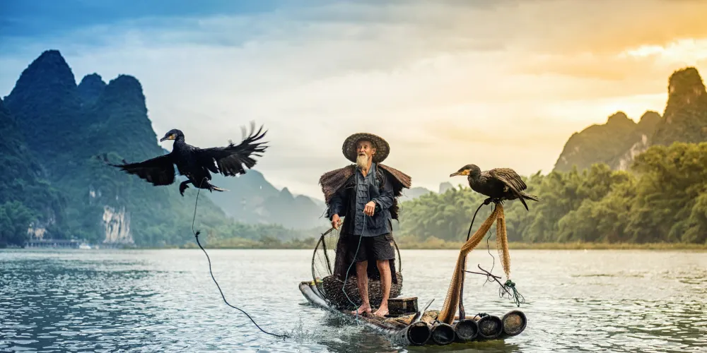 漓江的山水景觀是桂林山水的精華所在,“桂林山水甲天下”就曾經出現在小學課本中。漓江兩岸是姿態各異的群山,其中比較有代表性的就是九馬畫山和黃布倒影,新版20元人民幣的背面圖案就是黃布倒影的景觀。遊覽漓江可以做遊船或者竹筏,大船開闊,竹筏則比較有情調。