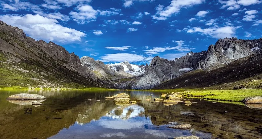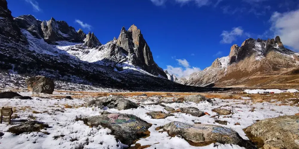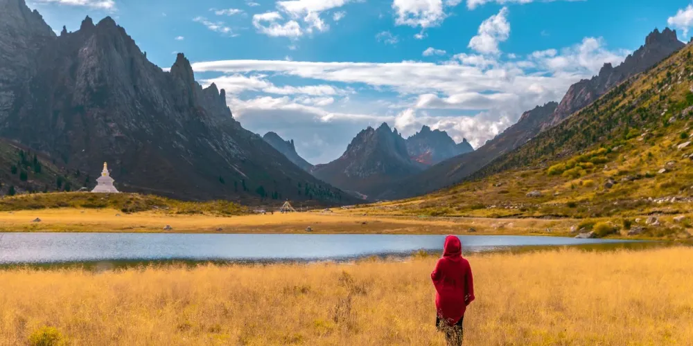 蓮寶葉則景區位於川、甘、青三省結合部,屬巴顏喀拉山南段支脈,總面積約500餘平方公里,距阿壩縣城39公里,為安多藏區眾神山之首,素有東方的魔幻世界「蜀山之源 崑崙天梯」之稱。景區以奇峰異石、冰川遺跡、雪山湖泊為主的省級生態旅遊示範區;是開展觀光、攝影、探險、科考、登山等特色旅遊之地,是探尋冰川遺跡、穿越石頭城堡、親近神山聖湖、傾聽格薩爾傳說、體驗無人機觀光為主的龍頭景區。2022年,認定為國家4A級旅遊景區。