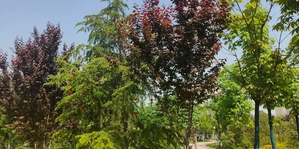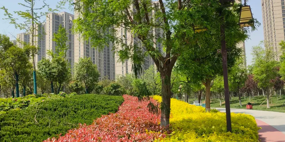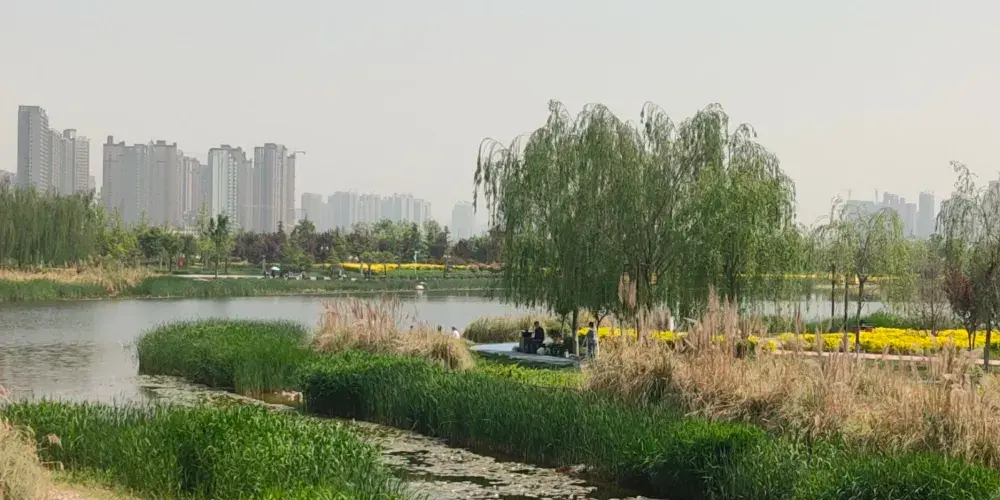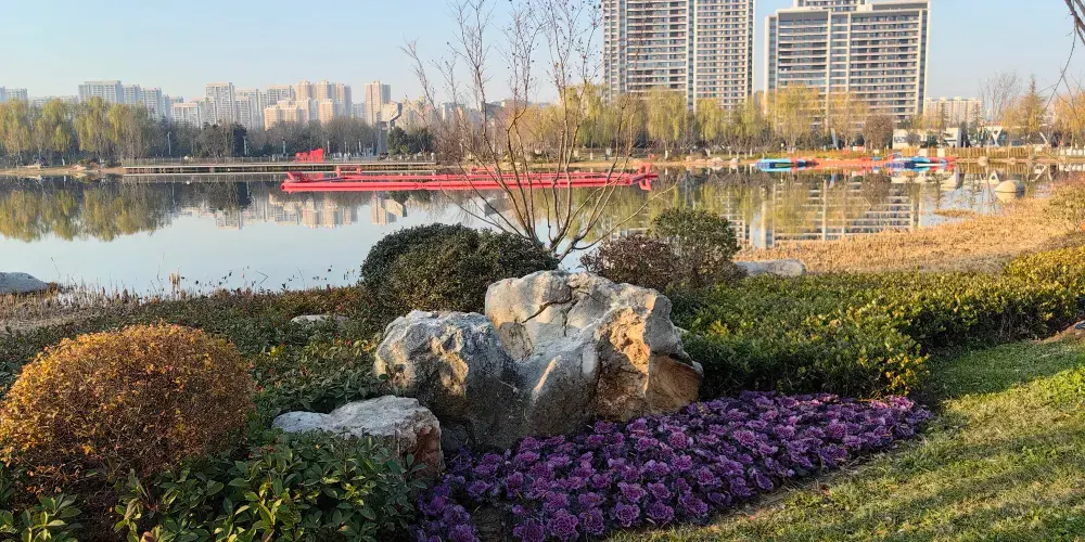 兩寺渡公園內草木繁盛,四季皆景,同時設定多個市民休閑運動節點。作為城市綠地系統中較大的綠色生態區域,兩寺渡公園是城市中動植物資源較為豐富之所在,被人們親切地稱之為“城市綠肺”、“城市氧吧”。公園分核心景觀區、特色植物展示區、文化展示區、健身活動區和公園管理區五大塊。核心景觀區由闕門、主入口廣場、便門橋、文王迎親、濱水焰火廣場、荷香亭、碼頭、蓬萊島、瑤台居等景觀組成。
