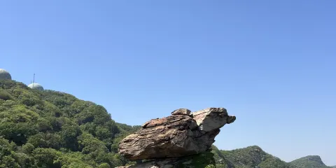 則評價一線天位於花果山,和七十二洞有異曲同工之妙,它是許多巨石和洞穴連接組成的一處景點,古人稱作“天通一線”和“石壁洞天”。一線天的主景是兩塊幾十米高的石頭互相支撐,中間形成一條狹窄的通道。人行其間,可看到上面露出的一線藍天,白雲匆匆流過,奇險奇趣。在一線天裏鑽洞,道路迴環,處處相通,忽上忽下,忽隱忽現,衹聽人語聲,不見人蹤跡,盛夏如秋,暑氣全消。從遠處山腰眺望一線天,這裏就是聞名的八戒石,很像一個戴着僧帽的老豬在綠樹叢中呼呼大睡。一線天下面是花果山山名摩崖石刻,遊客都愛在這裏留影,青山紅字,非常壯麗。這裏還有天然碑、硯石等景觀。沿小路前進可至墨香小徑,裏面有百餘位當代書法名家的作品刻在天然石塊上;還可至怪石園,看千奇百怪與《西遊記》有關的象形石。“神”字王在東部禿龍溝下,是刻在山體上的懷素草書“神”字,長39.4米、寬15.8米,為世界上較大的單體漢字,1996年被載入吉尼斯世界紀錄。