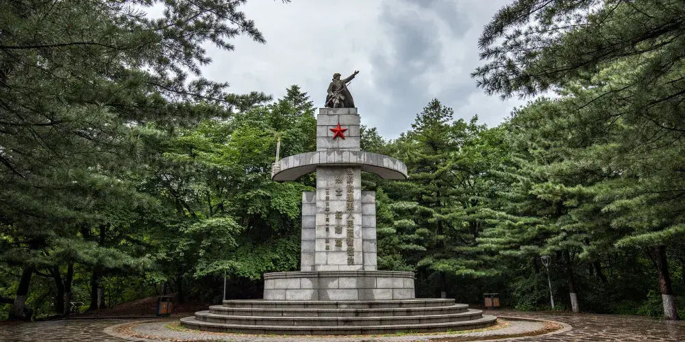 其造型獨特、特色鮮明,是革命先烈為解放遼東而英勇獻身的歷史見證,周圍蒼鬆翠柏環抱,正面有花崗岩鋪成的路面,為秀麗的錦江山公園增添了磅礴的氣勢。