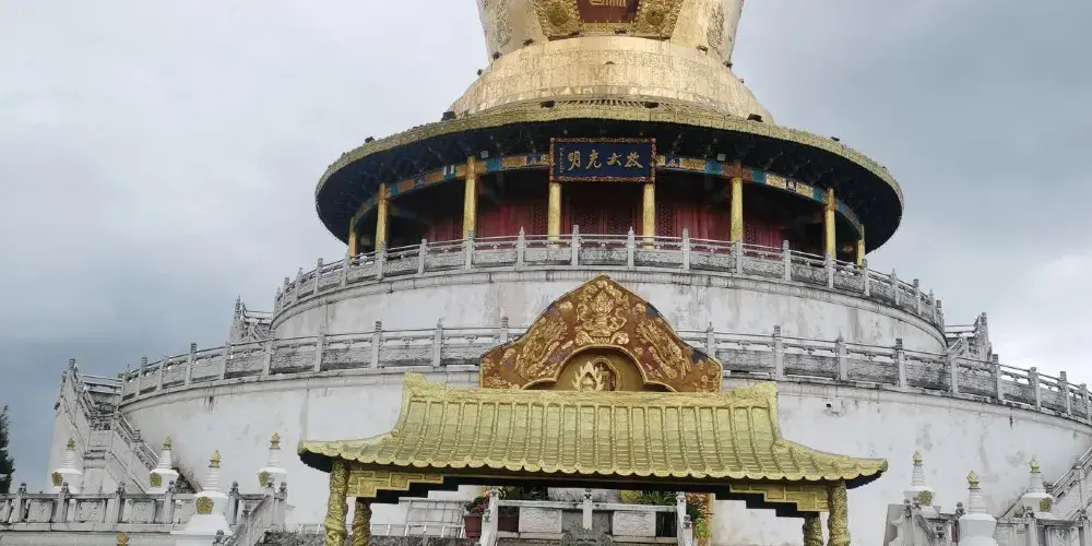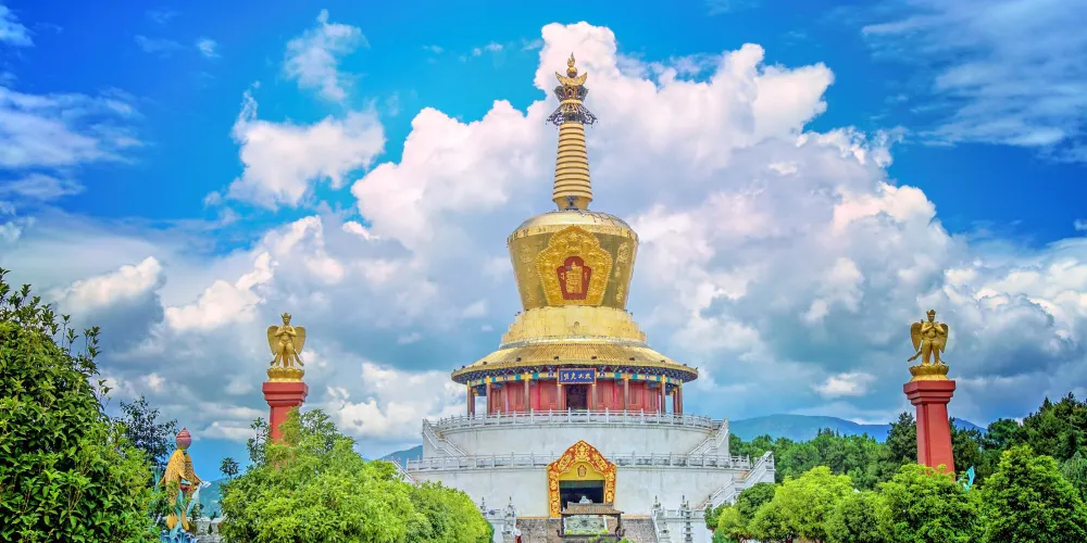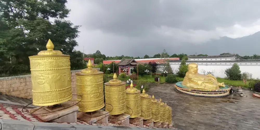 麗江金塔景區位於麗江市金山鄉德為鄉,是一座壯觀漂亮的藏傳佛教寺院。景區由蓮花生大師法像、觀音殿、千佛萬燈殿、財神壇城大殿等景觀構成,其中標誌性建築東寶尊勝塔是國內藏傳佛教罕見金塔,耗費大量黃金建成,遠望金光閃閃,非常壯觀。除了觀賞莊嚴精美的佛殿,還可以走走轉經路,撥動一個個金閃閃的轉經筒,為自己和家人祈福迎祥。