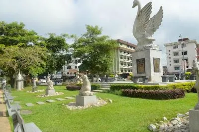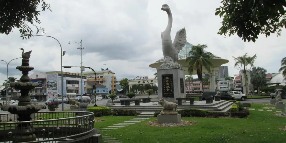 Lin'sSwanGarden位於市中心的詩巫門户旁邊,大天鵝是詩巫鎮的典型標誌,旁邊還有十二生肖雕像。
