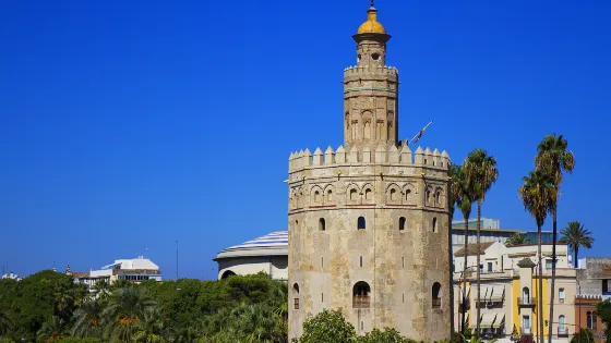 4.5 分174 則評價距離市中心 距離市中心1.4公里黃金塔是塞維利亞輝煌的航海史的見證,也是一座軍事瞭望塔,主要目的是監視從進犯河港的船隻。後來曾作為監獄、郵局等使用。現在是航海博物館,展示古海圖、古船模型及各種船頭裝飾。也是曾經是那些滿載著黃金白銀從美洲回來的船隻的終點。黃金塔因以金色瓷磚貼面而得名,現在瓷磚已經沒有了,但在斜陽下仍顯得金光閃閃。