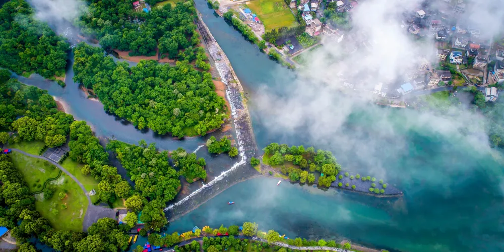 靈渠位於桂林市北部的興安縣境內,古稱秦鑿渠、興安運河。它是與"都江堰"齊名的秦代水利工程,秦始皇用這幾十公里的水路,開始了將南越併入中國的征途。如今漫步在靈渠河邊,依然可以感受到古人的雄心與智慧。大小天平、鏵嘴及水街是靈渠主要的看點。