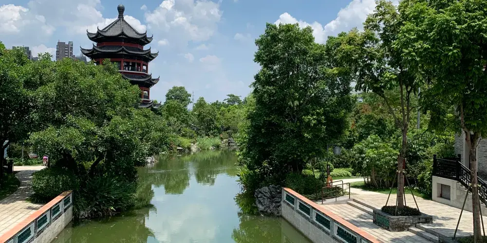 和園位於佛山順德區北滘鎮,是一個展示嶺南園林藝術、傳承廣府優秀文化的旅遊景區與園林博物館。共有「明清—清末民初—民國—新中國」四個階段的嶺南園林設計融入和園設計之中,形成北山南水、建築薈萃、亭閣水鄉、疊石花山四大特色景觀,以「同聚順和、粵韻流風、水月松風、雲岫精廬、泰和書院、百味鹹寧」六大景致,展現出一幅山水、街市、人家的嶺南水鄉生活畫卷。