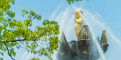 大型音樂動態群雕演出,重現了佛典中太子誕生的祥瑞和絢麗景象