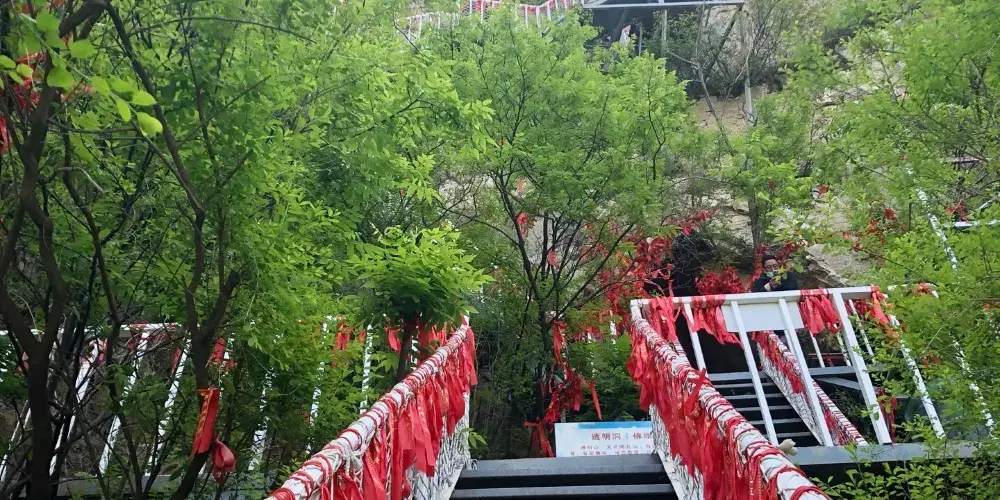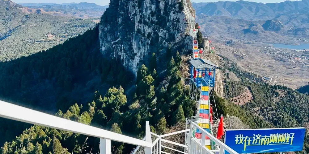 靈巖大佛山景區坐落在濟南市長清區萬德街道靈巖村,在靈巖寺外西側,是國家三A景區,具有深厚的文化底藴。這裏景色天然,植被茂密,一步一景。這裡有全國罕見的濟南72名泉中的千年古檀攬抱、終年不竭的“檀抱泉”,遊客在這裏可以品嚐山泉水沖泡的原生態菊芽茶;有泉水滴瀝,如漱珠璣,叮噹作響,清乾隆皇帝飲茶之地的“滴水崖”;有明孔山如佛仰天,峯巒疊翠,巨石嶙峋;有直插雲霄的“天梯”直達“文王寨”。還有老虎窩、夫妻石等自然景觀。遊客登高遠望,靈巖美景盡收眼底。整個景區峯巒疊嶂、花木扶疏,森林覆蓋率高達95%,負氧離子含量達每立方米10億個,是一個原生態的“天然氧吧”。