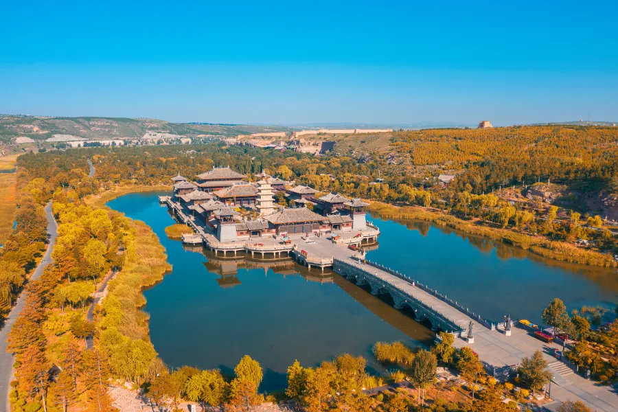 大同南郊區雲岡石窟景區湖心島中央