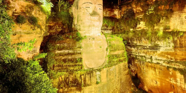 凌雲山位於樂山城東的岷江、青衣江、大渡河三江匯合處,與樂山城一水之隔。該山因有集風、棲鸞、望雲、靈寶九峰等景點被稱作九峰山,後因山中修建凌雲寺而更名凌雲山。山上茂盛的樹林和竹林終年翠綠,山崖和峭壁風景美麗。山下三江會聚,波浪、小舟就像一副天然的畫卷為歷代文人墨客所稱讚。