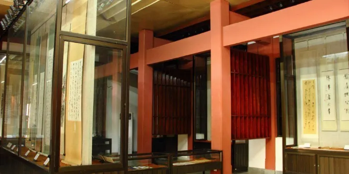 林散之藝術館是我國草書大家,有當代草聖之稱的林散之先生的作品陳列館。林散之先生祖籍安徽省和縣烏江鎮,一生酷愛山林,早年受益於書畫大師黃賓虹,他每遇山水佳境,必登臨、吟詠、圖貌之,得寫生畫稿八百餘幅,詩作二百餘首,尤精於書法。他六十歲起始作狂草,卻功深力到,妙造自然,享譽海內外,有一代宗師之譽。先生生前曾十餘次放歌採石,心儀先賢,素有“歸宿之期與李白為鄰”的願望,因此,在他百年之後,馬鞍山市為他設館於採石公園內,以遂其願。林散之藝術館設計為園林風格,佔地三千八百平方米,綠草茵茵的庭院裏主館、副館和學術館三個以茅草為頂,粉牆紅窗的仿古建築錯落有致。主館名之為“江上草堂”,內藏先生各個時期的代表作一百餘幅,大多為草書精品;他生前所作寫生畫稿及詩作手稿則保存於副館內;值得一提的,是庭院裏有幾株史前時代的樹木遺骸--硅化木默然佇立,與杜鵑同沐春光,與翠竹共享冬雪。聯繫草堂內先生晚年自述中曾以“散木”自號,然而散木不朽,便可一窺此藝術館設計者的匠心了。