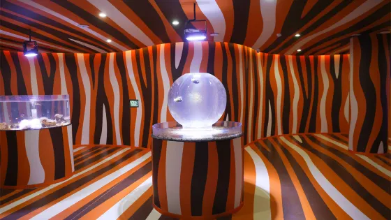 二層極地小鎮模擬南北極生態環境,展示企鵝、北極狼等極地動物,結合冰雪主題造景,打造真實感極地探索體驗。二層還設有海洋劇場,可觀賞海豚、海獅與訓練員共同演繹的精彩表演。此外,館內還分佈海豹池、海狗等極地動物的棲息地,讓你在領略南北極風光的同時,感受極地動物的獨特魅力。