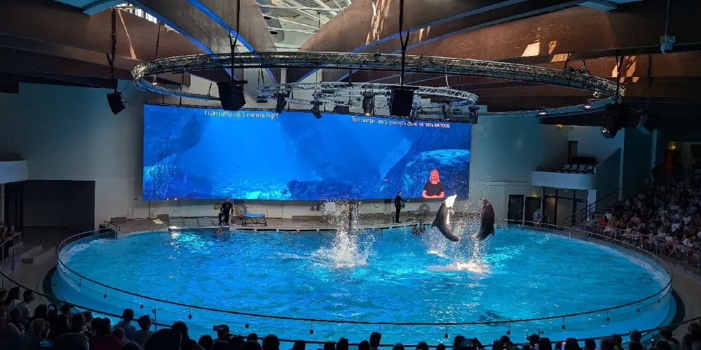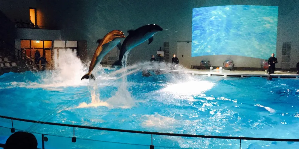 這是一個位於克萊佩達縣的海洋博物館,人們可以看到企鵝、海豹、海豚、海獅等海洋動物。