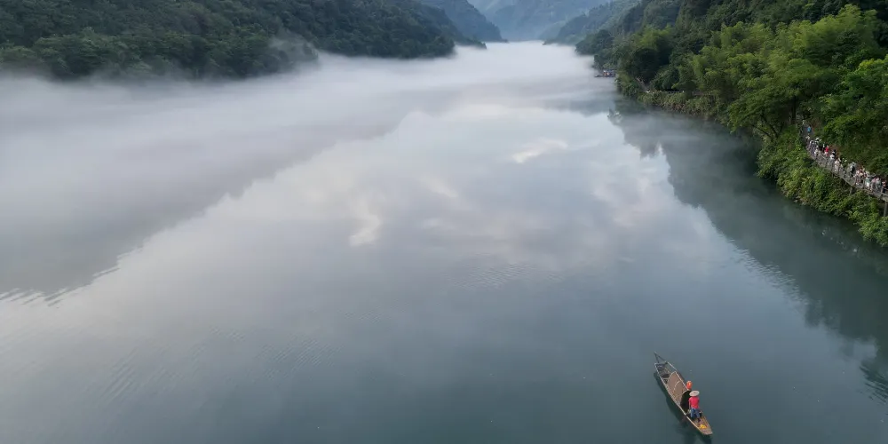 這裏白霧繚繞,風景美如畫,站在觀霧台上可以欣賞周圍的美景,還能看到漁夫撒網,是一個很適合拍照的地方。