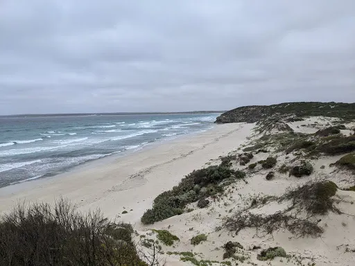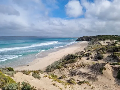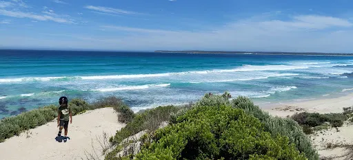 位於袋鼠島南部海岸的微風灣是人跡罕至的美麗世界,碧藍而平靜的海面,細軟的沙灘,洋溢著悠閑、自然的情趣。2003年,雪梨大學教授Andrew Short在對一萬個海灘進行了詳細考察之後,宣布微風灣是全澳洲较美麗的海灘。這裡有著保存完好的原始生態系統和豐富的動物種群。時至今日,島上將近一半的叢林依舊保持著1802年袋鼠島剛被發現時的風貌。這段綿延崎嶇的海灘被公認為野餐、衝浪和垂釣的勝地。