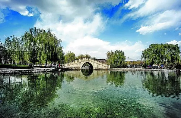 柳湖位於平涼市城區的中心,佔地面積8.8萬多平方米,合133畝,其中湖水面積32畝,是隴東著名的自然山水園林。柳湖始建於北宋神宗熙寧元年(公元1068年),時任渭州太守的蔡挺引泉成湖,因柳樹宜水,故處處植柳,枝高葉茂,翠色參天,故名“柳湖”。明嘉靖年間,韓藩昭王佔為苑囿,並做了大規模的擴建,由明武宗敕賜“崇文書院”。清乾隆之後,又先後多次修葺,乾隆五年(公元1740年)改名“百泉書院”,後改為“高山書院”。同治初年,柳湖毀於戰火。同治十二年,陝甘總督左宗棠駐兵平涼,再次修復,更名為“柳湖書院”,並題親書“柳湖”匾額。1926年改為甘肅省第七師範學校。柳湖之勝,始於暖泉。其地有暖泉一眼,水温達17℃左右,四季暢流。暖泉是柳湖的源頭,泉旁有一石碑,其上為左宗棠題寫的“暖泉”二字大字,下有“平涼高寒,水泉甚洌,此獨以暖稱,驗之隆冬不冰也”等銘文。如今暖泉已重新修整,圍以鐵欄,加以保護。柳湖以奇特的“柳中湖,湖中柳”著稱。暮春時節,柳絮輕揚,瀰漫湖中,被人們譽為“柳湖晴雪”,列入平涼八景之一。“滿目晴光映野塘,何來白雪遍空揚。紛紛玉屑隨空舞,片片銀光繞岸狂。月下沾衣疑欲濕,風前撲面不覺涼。柳湖饒有西湖趣,惹得騷人興自長。”就是古人對“柳湖晴雪”的詠頌。