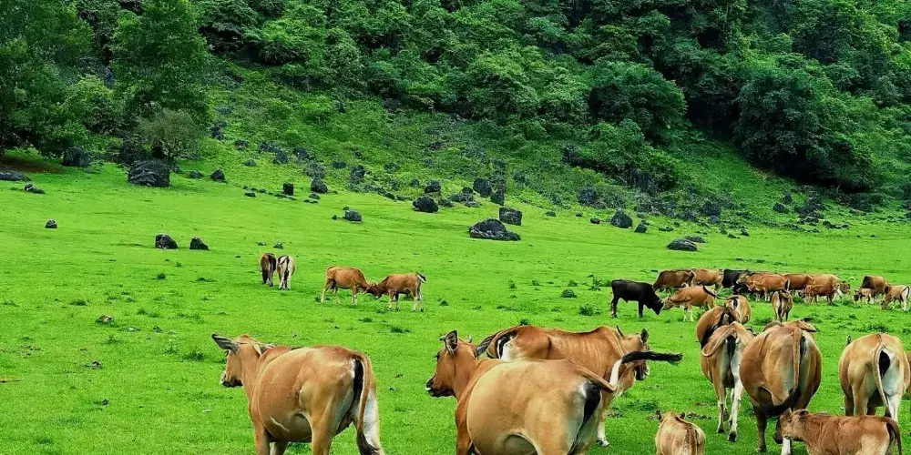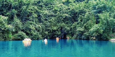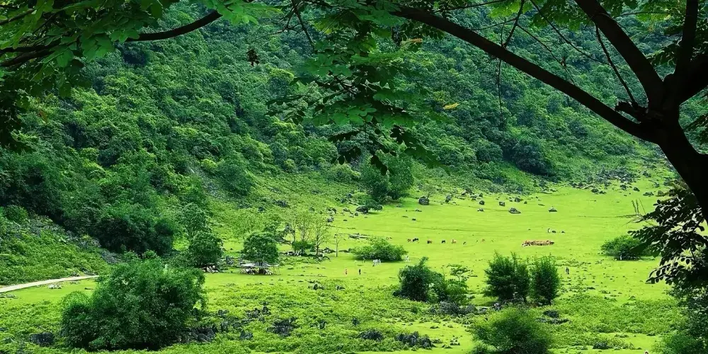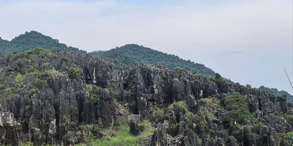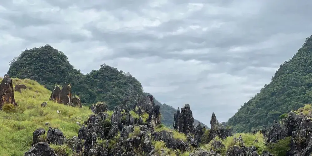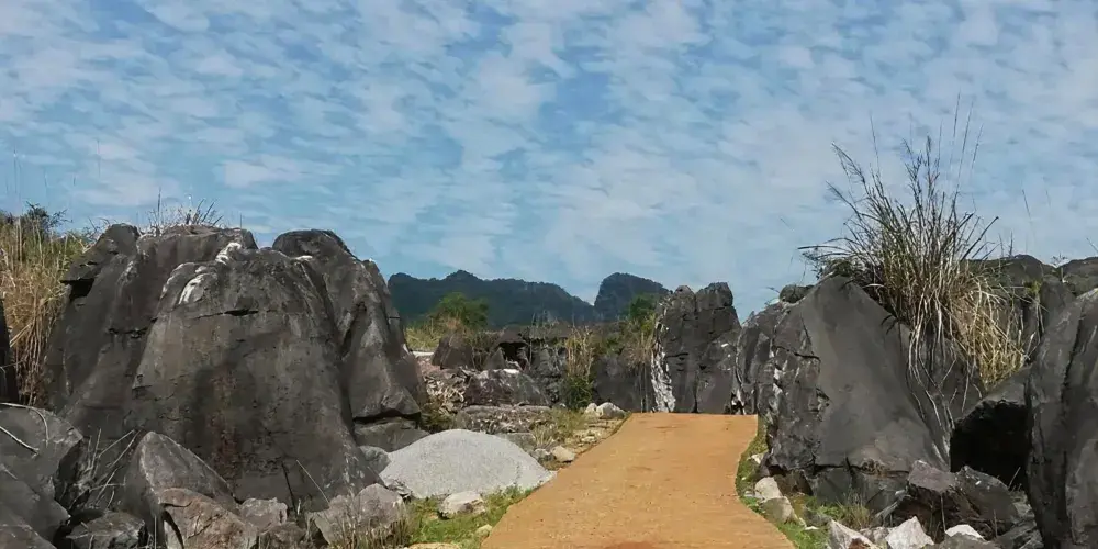 中渡響水石林位於中渡鎮,春天是枯水期,會展現出一個超級迷你版的雲南石林。