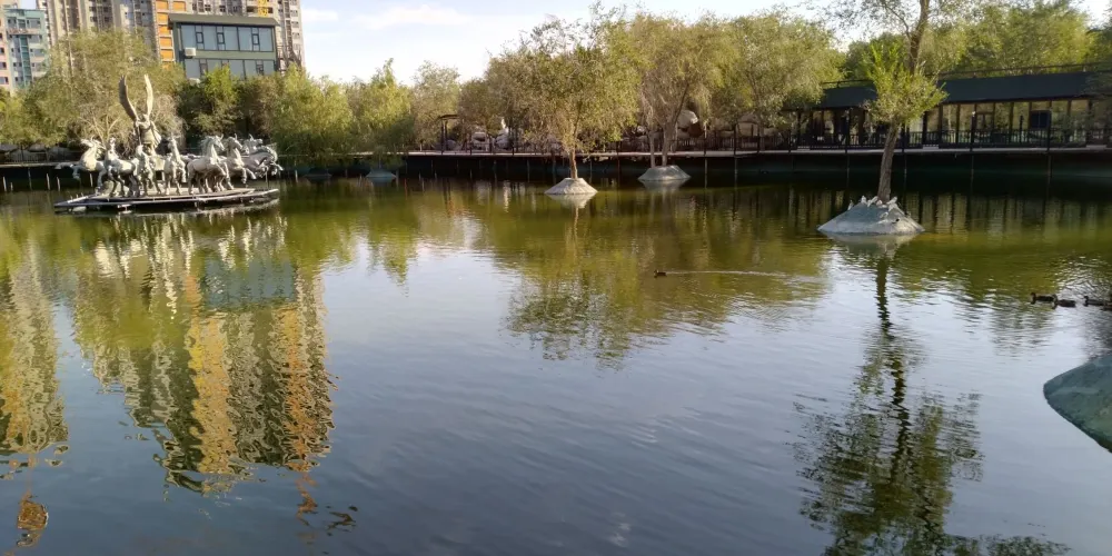 新疆古生態園汗血馬基地位於烏魯木齊市區鯉魚山公園上,始建於2005年,佔地近300畝,園內有硅化木、胡楊木、黑鐵隕石、草原石人、硅化木、普氏野馬、汗血寶馬等大量珍稀生態資源,園區還配套有「野馬-絲路驛站文化主題酒店」。這些景觀融合在一起,形成了新疆古生態園「馬、畫、園、店」四大主題。