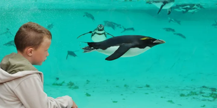 △ 前往海灘觀看洪堡企鵝羣在企鵝池中潛水、游泳、嬉戲和覓食,池中設有大型水下觀景窗。