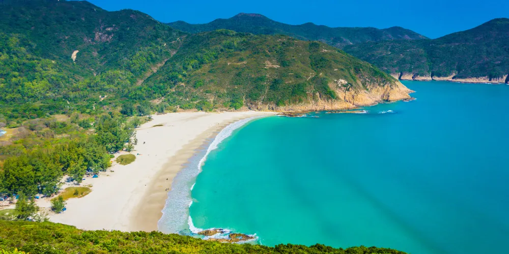 浪茄灣位於東郊野公園內,鄰近萬宜水庫東壩,這里沙細水清,四周風光如畫,既適合年輕人暢泳追逐,又適合小朋友玩水堆沙。忙裡偷閒的都市人可以躺在柔軟的沙上曬太陽,三五知己可以坐在海邊談天說地。還有很多人來這裡露營扎地,晚上看星星,清晨看日出,十分愜意。