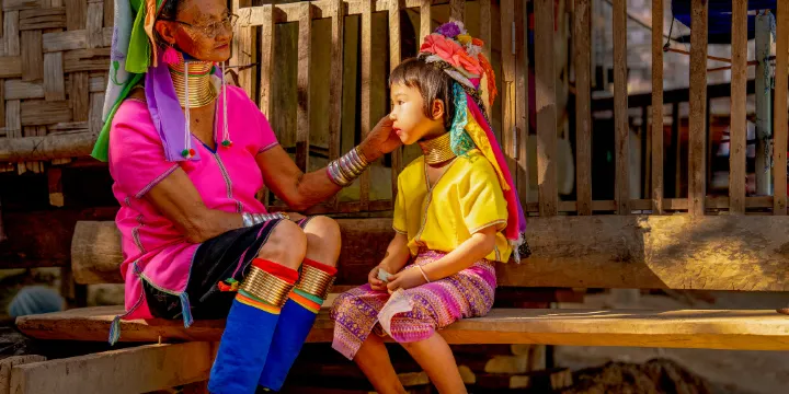 長頸族村位於泰北地區,其中的村民長頸族是泰緬邊境的少數民族之一,為逃離戰亂定居於泰國北部清邁、清萊等地。長頸族是克倫族的分支,在泰國叫做巴當族。巴當族姑娘不僅熱情好客,並且十分可愛。巴當族姑娘從五歲起就要戴銅環把頸項墊高,以後每兩年要加高一次,直到25歲結婚為止。