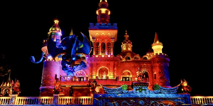 景區在傳承婚慶元素的同時,成功轉型融入了全年齡親子遊樂概念,在景區原有的文藝演出外,更引入了佳樂專LUKA潮玩IP和港風「紅白藍」元素吸引年輕客群,而即將亮相的「境在功夫」夜遊項目,深挖嶺南文化精髓,以功夫為靈魂,透過光影藝術與科技手段,構築一個充滿詩意與俠氣的夜間幻境,旨在打造極具東方美學意蘊的夜遊新名片。