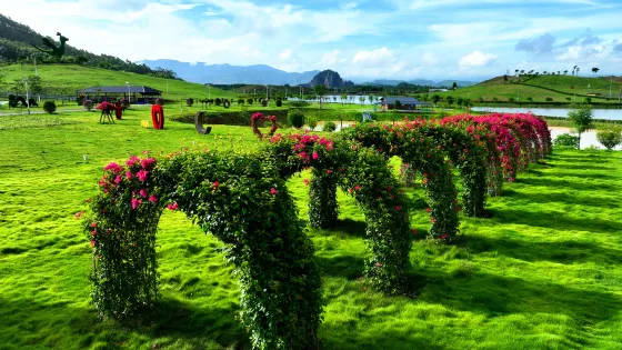 4.6 分9 則評價距離市中心 距離市中心15.7公里龍門盛花谷景區,盛花谷景區位於惠州市門縣龍華鎮青年林場內,是省級休閑農業與鄉村旅遊示範點,佔地面積5200畝,擁有豐富的天然森林資源。園區內有超過200畝的黃花風鈴木,花蕊盛開季節超級壯觀,每年吸引幾十萬攝影愛好者前來打卡。盛花谷是結合客家文化特色,打造集餐飲、住宿、觀光、農業科普為一體的生態度假村。一、農業觀光區:園內有玫瑰園、農業科普長廊、蔬果採摘(蔬菜、聖女果)、山茶花迷宮、萌萌場景打卡、古老許願井、河道遊船等150畝花卉網紅打卡功能區;二、網紅打卡區:200畝黃花風鈴木、彩虹道、網紅鳥巢、鞦韆木棧道、相框打卡、綠野仙蹤木棧道;三、奇妙小火車:每個人的心裏,都有一輛開往童年的小火車,乘坐奇妙小火車開啟一場叢林穿越之旅。(自費)四、垂釣區:可攜帶魚竿,在靜謐的湖畔休閑垂釣徹底放鬆身心,忘卻城市的喧囂,來一場身與心的陶冶。(自費)五、餐飲區:園區內備有木屋水上餐廳、中餐宴會廳、環湖燒烤場、美食小吃街、鬍子叔叔手信店。六、草坪星空露營:5600平方米大草坪星空露營,擁有20頂天幕帳篷,您可以坐在天幕下品嚐小資下午茶點,夜晚進行BBQ自助晚餐,躺在草坪中仰望星空,進行草坪LIVE音樂篝火晚會,一起把酒歡歌,回味青春年少。(20人以上可安排音樂晚會)七、泰極湯泉度假酒店:酒店擁有湯泉客房16間(雙人房 9 間 、大床房 6 間、親子房1間),將森林景觀與現代空間藝術絕妙結合,營造出時尚、健康、壯麗高貴的休息環境,配合華麗柔軟的燈光,更是美不勝收,令人流連忘返。房間內還配備了陽台,微風吹來坐上藤製搖椅微微晃動盡情享受午後的寧靜與安逸到了夜晚在這裏聊天看星星不失為一個好主意~