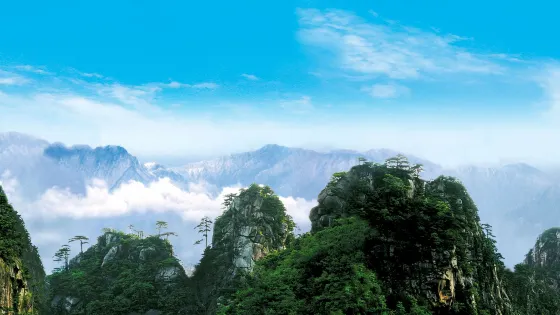則評價從天子頂觀景台望過去,秀麗的山峯羣就是“明妃七峯”。她們的名字依次是廣袖、湘愁、玉箏、羞月、霜冷、劍媚、落雁,都是些非常詩化的名字,並且,峯如其名,神態各異,風姿綽約,那些山崖上傲霜鬥雪的黃山松,紮根巖石,造型奇特,與山峯、懸崖共同組成一幅幅秀美的圖畫。明妃七峯,是大明山諸多峯林中有代表性的峯林景觀,考慮到它的原始性和神祕性,“明妃七峯”衹可遠觀而不可褻玩。