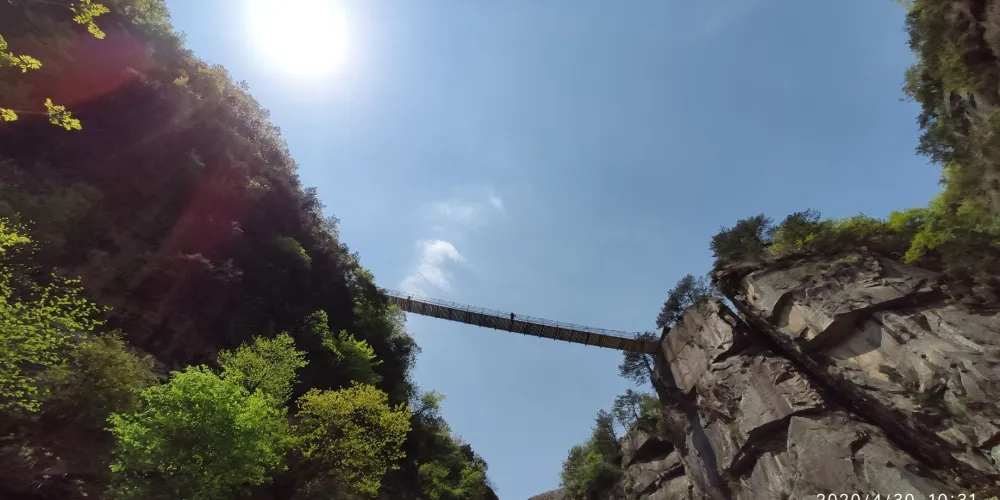 龍門飛渡索橋就是龍門飛渡上一條晃悠比較厲害的鐵索橋,位於浙江杭州的大明山。因為所在地叫龍門口,所以稱為“龍門飛渡”。龍門飛渡索橋的一頭是懸空的棧道,另一頭是可以遠望高山的草甸,橋下是深淵,走在橋上非常刺激。