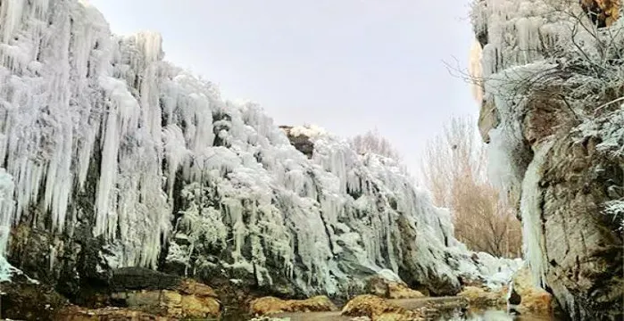 龍門峽谷風景區位於滿城縣城北20公里處,龍潭峽谷全長4公里,自龍門湖東南側蜿蜒向南,寬處200米,窄處僅8米,深處30米。峽谷兩岸石壁陡峭,怪石嶙峋,高處瀑布跌落,懸珠掛翠綠;谷底山泉四溢,飛瀑流銀,波濤堆雪,風光如畫,遊於谷中如入仙境,有“北方小桂林之稱”。隨着冬日的到來,零下幾度的氣温讓總想出遊的人們望而止步,冬季的北方的山中萬物凋零,寒山蒼茫然而此時卻恰巧有一種美景是欣賞的好時候——冰瀑!龍門峽谷冰瀑是因天氣寒冷,水流到低於零攝氏度的地表後與巖石凍結而形成的一種自然現象。冬季氣温驟降時,夏日裏泉水叮咚的山谷中,卻點綴着一條條銀裝素裹的冰柱,往日流水潺潺的河=溪凝結成潔白的"玉帶"在山間舞動,更有寬闊的巨型冰瀑高懸在崖壁之上,讓人感歎大自然的鬼斧神工。冰瀑全長2.5公里,依山傍水,雄偉壯觀,晶瑩的冰簾以及千姿百態的冰幔冰掛,好似一派璀璨耀眼的冰晶世界,冬日陽光的照射下,熠熠生輝,潔白如玉,令人歎為觀止,展現給遊客一個冰清玉潔的大世界。