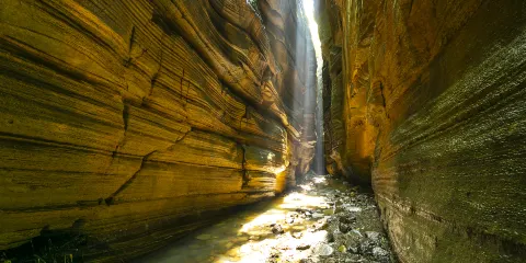 索溪峪又稱索溪,因景區內的溪水形狀似繩索而得名。與森林公園其他險峻之地不同,這裡終年雲霧繚繞,清澈的溪水四季奔流不息,處處可見秀麗山峰。十里畫廊是索溪峪的精華景點,長達5公里的峽谷中野花飄香,奇峰異石林立。漫步其間,宛如置身一幅自然山水畫卷之中。