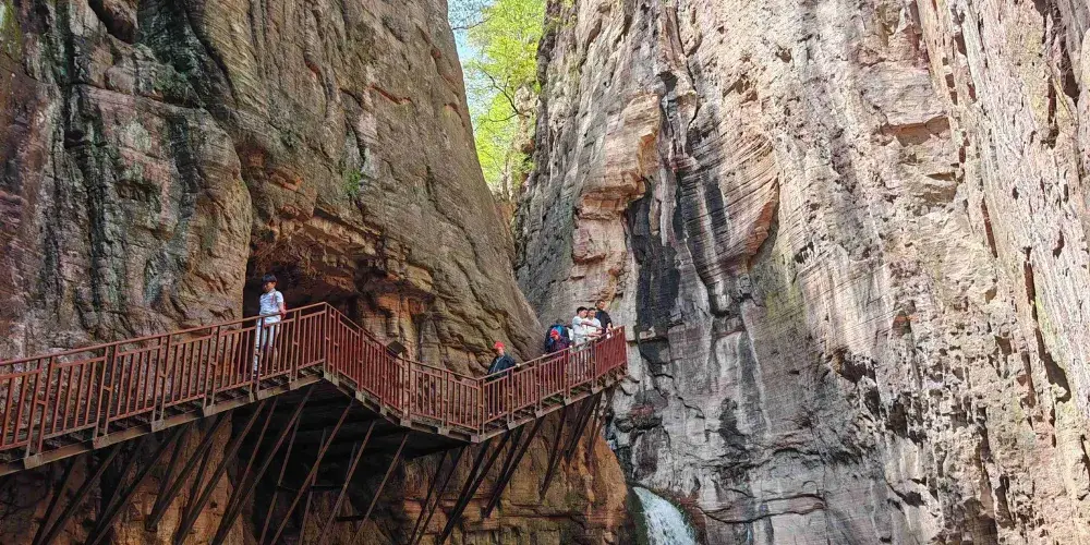 龍潭大峽谷位於洛陽市新安縣北部,景區內有很多地質奇觀,比如高峽甕谷、水往天上流等奇特景象。峽谷內的自然風光也非常迷人,清澈的溪流和從絕壁飛濺而下的瀑布、深潭隨處可見,還可以挑戰高空滑索、攀岩、橡皮艇等戶外活動,是避暑的好去處。