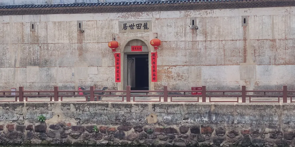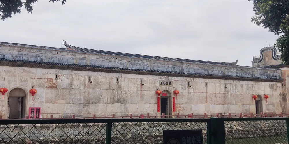 龍田世居位於坑梓鎮田段心村,目前是龍崗地區保留較完整的客家民居之一,整體建築造型很有特色,周圍有類似護城河的池塘,半圓形的河岸與外牆形成龜背狀圖案。建由梅縣遷來的黃氏族人在清道光十七年建造了龍田世居,裡面的規模和氣勢都很宏大,結構十分嚴謹,是寶安縣重點文物保護單位。