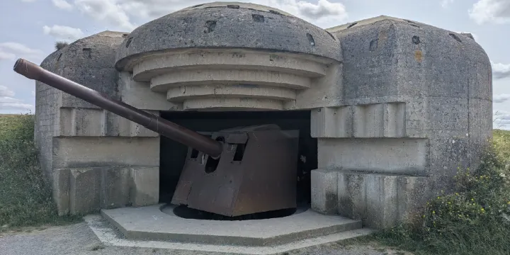 德軍岸防炮台是二戰時期的防禦設施,它位於英軍登陸的金灘和美軍登陸的奧馬哈海灘之間的位置,這裏共有四座混凝土堡壘,每座堡壘裏安置着一門152mm口徑的大炮,在登陸日那天德軍曾在此向海面上的盟軍艦艇射擊,但還是被盟軍登陸部隊佔領。