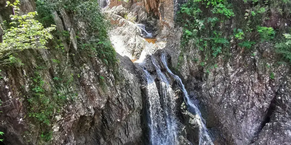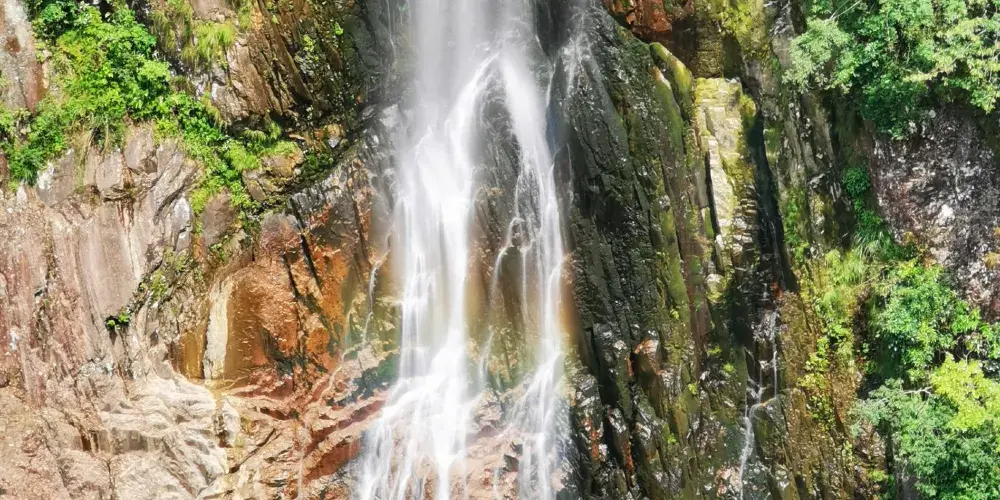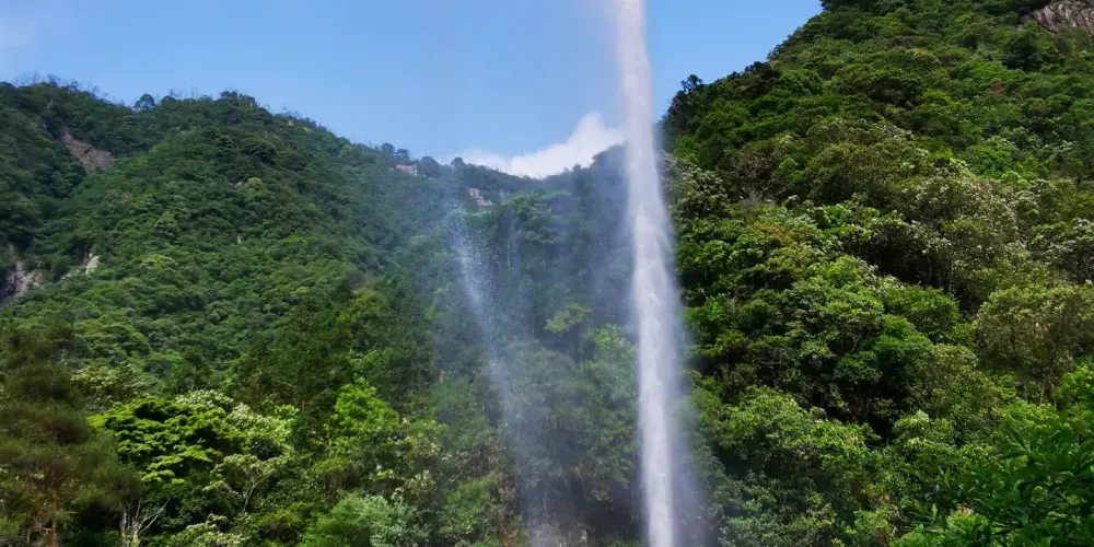 則評價七折瀑布一共有七折,每一折的形態都不同,瀑布的水量很大,水聲潺潺,特別壯觀。
