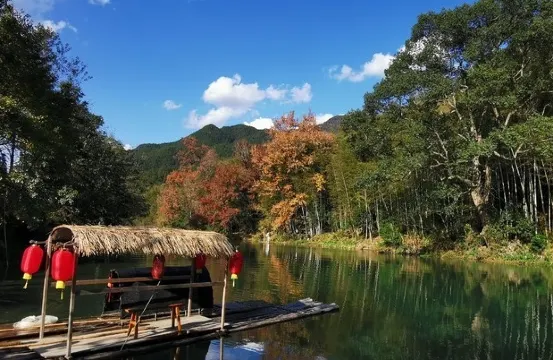 龍尾村位於婺源縣溪頭鄉,也是一個比較古老的村落,仍保留着不少古老的徽派建築。據説龍尾村是四大名硯之一“龍尾硯”的硯石產地。龍尾村很小,幾乎是站在村頭可望村尾。村中的建築自然離不開徽派風格——青磚白壁馬頭牆。村後有一條河,河水碧綠如玉、清澈明凈;河岸的山腳青竹綠樹,紅葉似火。微風吹過,紅葉飄然落下隨波而去,在光影搖曳中構築成一幅美妙的畫面。