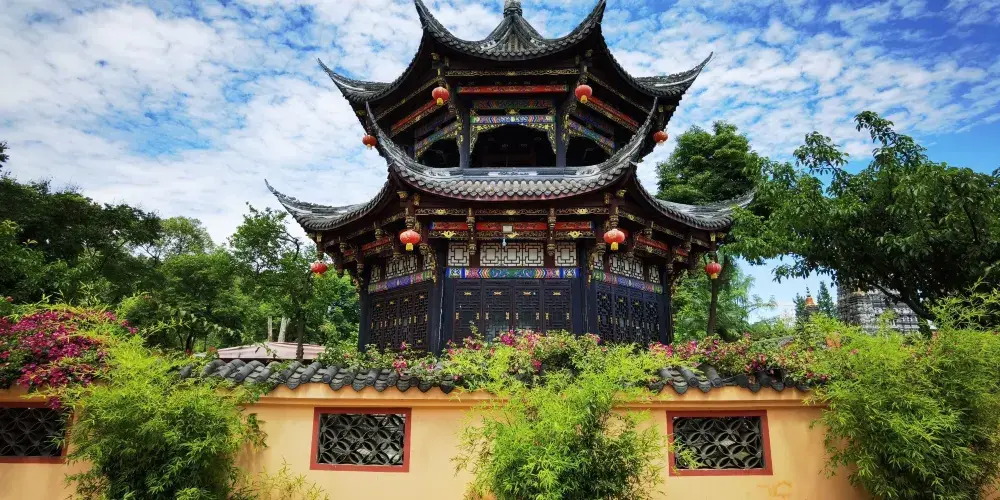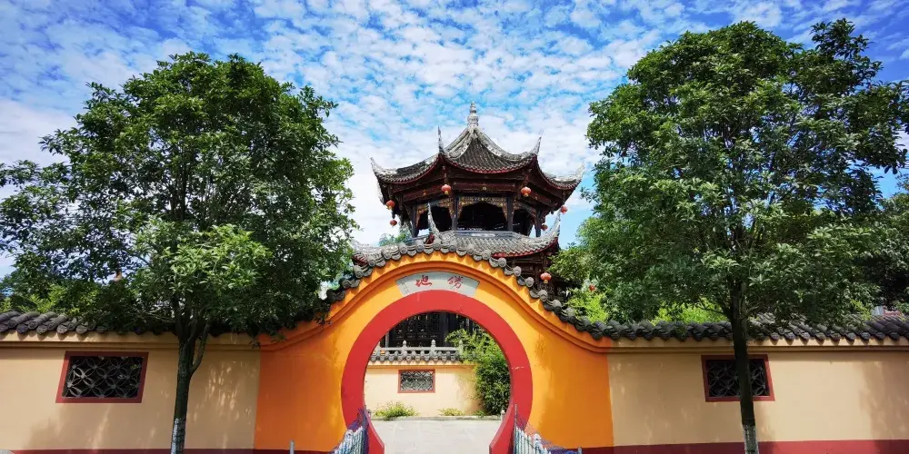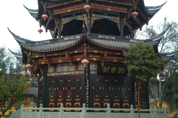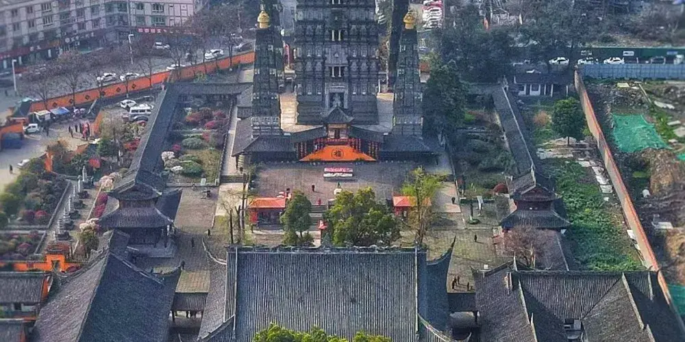 龍興寺坐落在彭州市區,原是一座遠近聞名的千秋古剎。龍興寺主體建築為天王、大佛、大雄寶殿和藏經樓四重,均排列在南北向中軸線上,佈局規整,風格古樸,加上客堂、祖堂、戒堂、方丈室、僧房、五觀堂等共一百餘間,是一組完整的佛寺建築群。