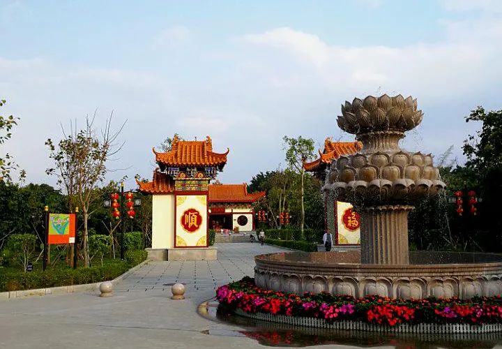 龍興寺位於龍崗區龍園公園內,2015年正式落成,高處的古建築為觀音閣。