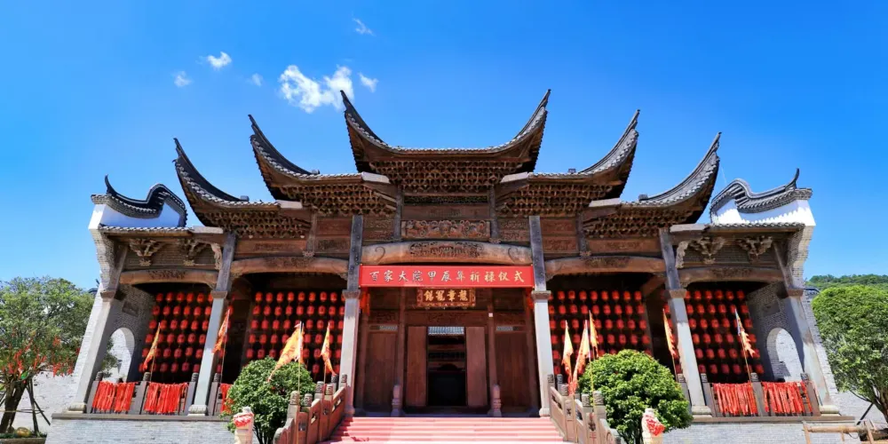 百家大院,一座可居住的博物館,坐落於國家歷史文化名鎮——中山鎮內,佔地面積約14萬平方米。景區依山而建,傍水而居,景區內建築都是數百年的明清古建築,以中國“和”“福”文化為主基調,以中山國家歷史文化名鎮獨特的“客家百姓鎮”文化為內涵,展示姓氏文化、耕讀文化和匾額、帛畫、古傢俱、古葯、古書等藏品以及漢唐木雕、石雕等精美古代藝術品,同時巧妙植入現代元素,實現與歷史的友好對話,和諧共生。百家大院力求打造集休閑旅遊、親子研學、修心養生、國學傳承和兩岸文化交流為一體的綜合性旅遊度假區,讓每一位訪客都能找到屬於自己的文化共鳴與心靈棲息地。