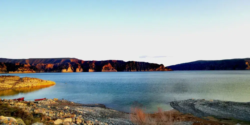 龍羊峽水庫位於黃河上游青海省共和縣和貴南縣交界的龍羊峽谷,電站裝機容量128萬千瓦,水庫設計蓄水位2600米,總庫容247億立方米,調節庫容194億立方米,是一座具有多年調節性能的大型綜合利用樞紐工程。龍羊峽人工水庫已成為美麗的旅遊景點,大壩鎖黃河,高峽出平湖。碧波蕩漾,湖光山影,乘遊船繞湖一週,蒼穹碧野,心曠神怡,遊客才頓然悟到,黃河水在這裡是“清”的。清清的黃河水,是大自然的賦予,是人們對黃河利用和改造的結果。