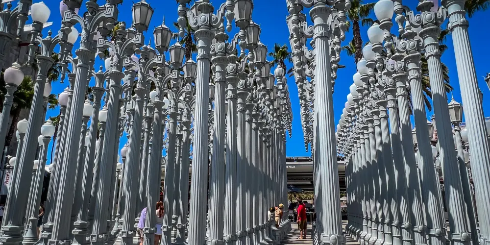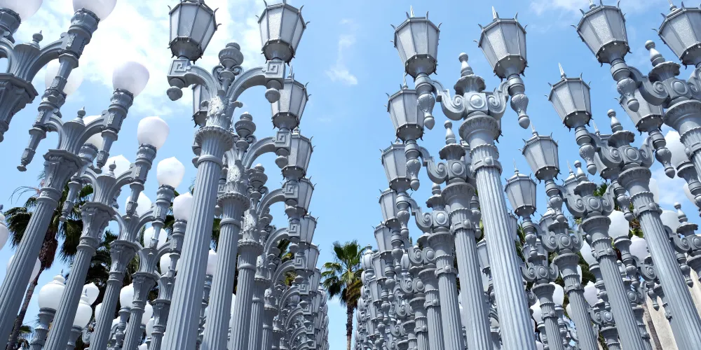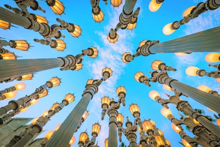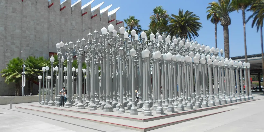 洛杉磯縣藝術博物館坐擁上萬件藏品,涵蓋了幾乎每個時代每一種文化的藝術作品,是美國西海岸規模較大的百科式藝術博物館。除藝術特展之外,還承辦電影放映、音樂會等活動,並在很大程度上利用了博物館。博物館外部整齊劃一的燈柱群也頗為壯觀,尤其是夜幕降臨,燈光一同亮起,美不勝收。