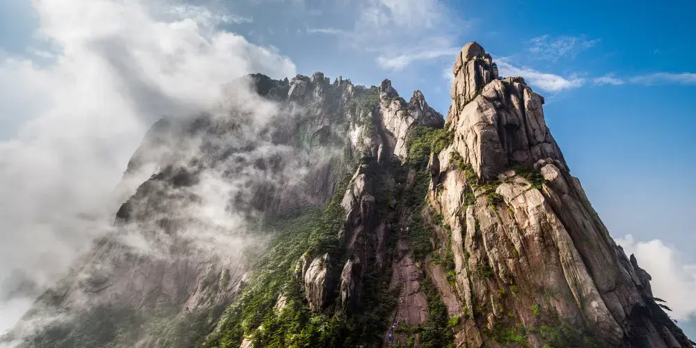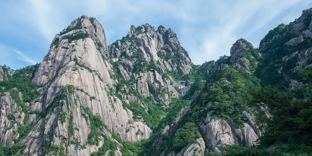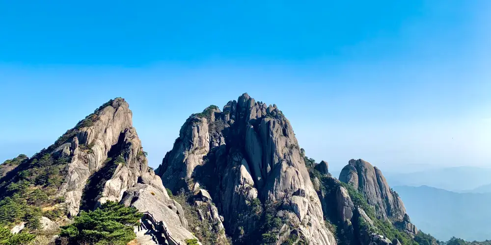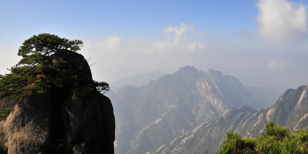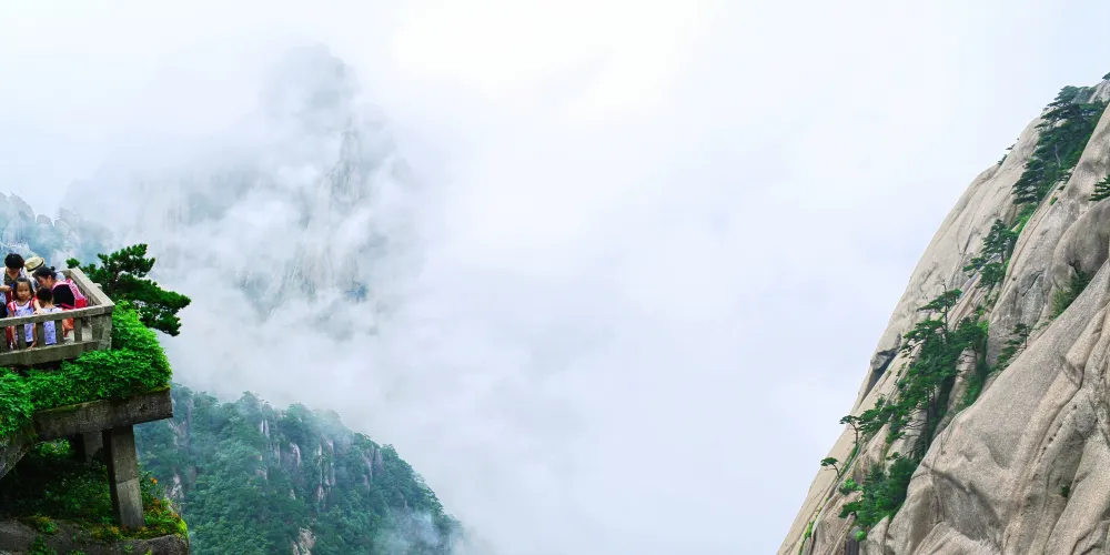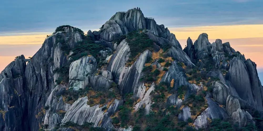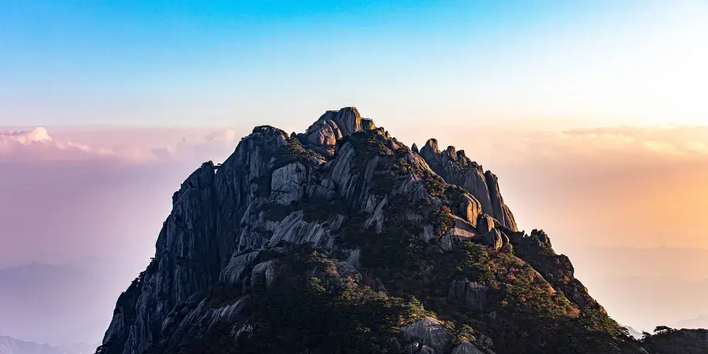 光明頂是黃山的較高峰,海拔1860米,因高曠開闊,日光照射長而得名。登上光明頂觀景特別棒,這裡不僅是俯看四周壯麗群峰的好地點之一,也是看日出、日落、雲海的好地方。