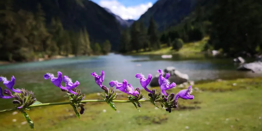 蓮花海由雪山、石林和森林環抱,雪峰在陽光映照下聖潔而高雅,山腰的石林以及樹木虯枝盤繞,千姿百態,那裡有黃羊、青羊等野生動物生息繁衍,山腳茂密的森林中還生長有很多天然藥材,如蟲草、貝母、雪蓮花等。在鮮花盛開的時節,諸多奇花異草競相開放,花香撲鼻,沁人心脾。而在秋季,滿山絢麗的色彩畫,多姿多彩的群山像淋透了顏料,紅色、黃色、青色、綠色,映襯藍藍的天空,即使再精巧的畫筆也難以描繪這般的絢麗美景。