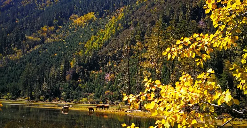 如鏡的水面倒影著森林和天空,寧靜而致遠。湖泊周圍如翡翠般碧綠的草坪,成群的牛、羊如珍珠般撒落在草原上,美麗的蝴蝶在空中翩翩飛舞,偶爾還會有白鶴和水獺在湖中嬉戲。