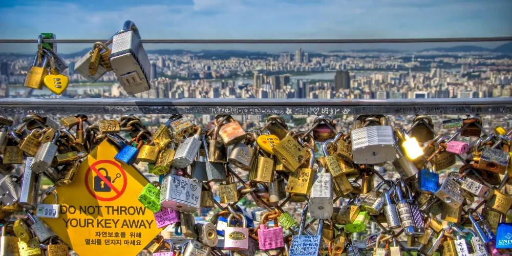 • N首爾塔最受歡迎的地方是愛情鎖圍欄,這也是情侶們最喜歡的約會地點。與愛人在此掛一把鎖,許下永恆的愛。