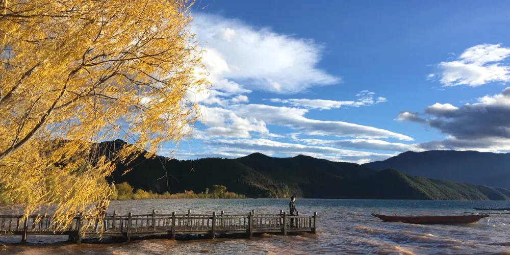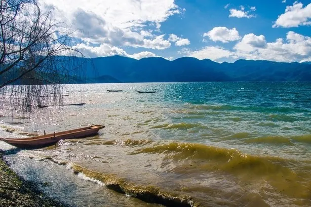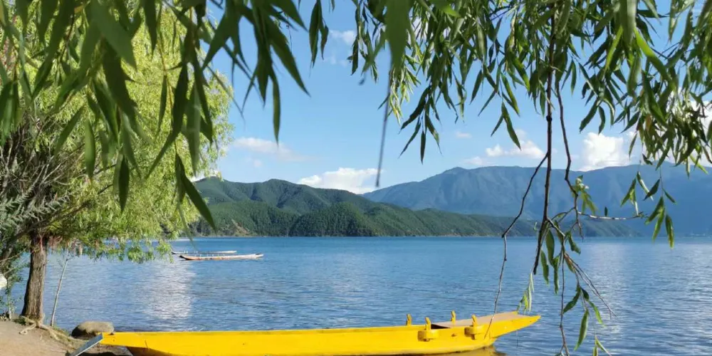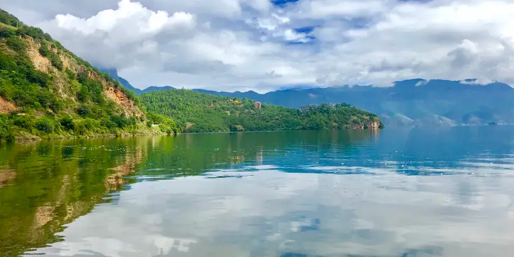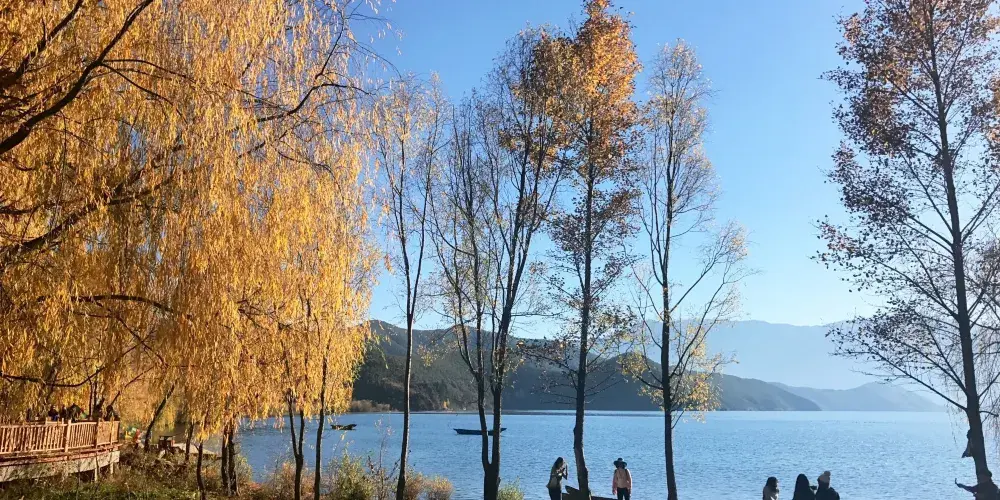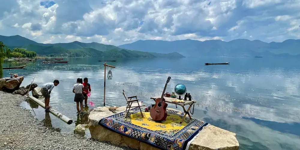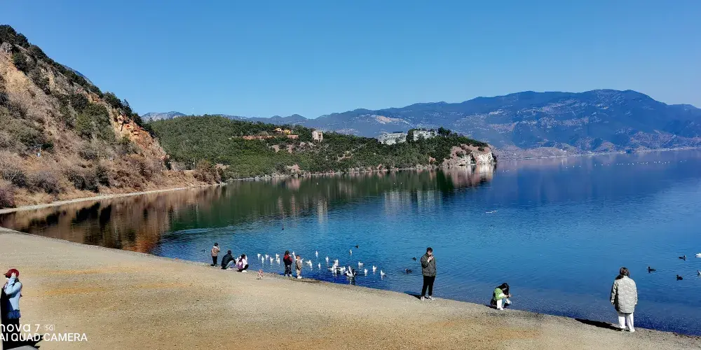 情人灘位於瀘沽湖景區內,是一大片坡地,延伸到湖裡成為水草密布的濕地。