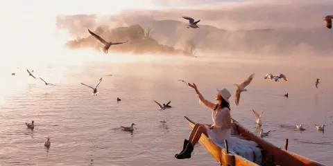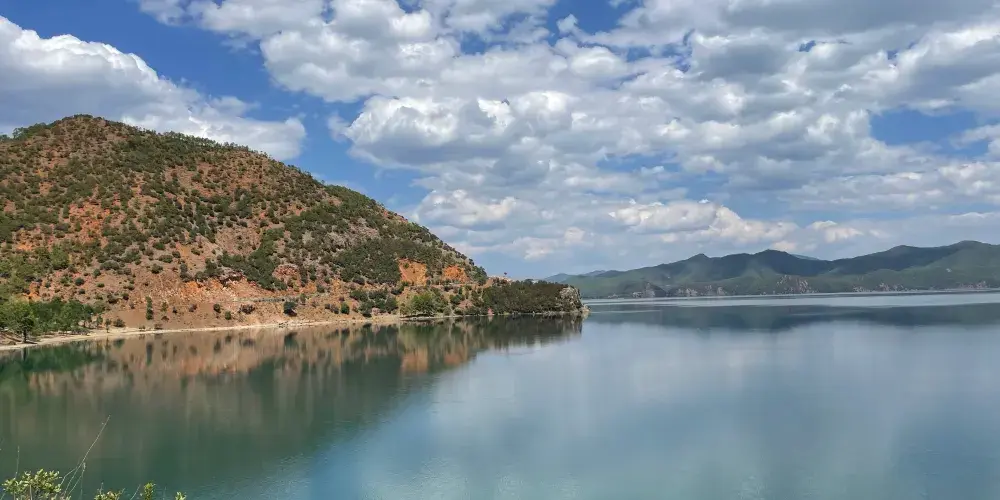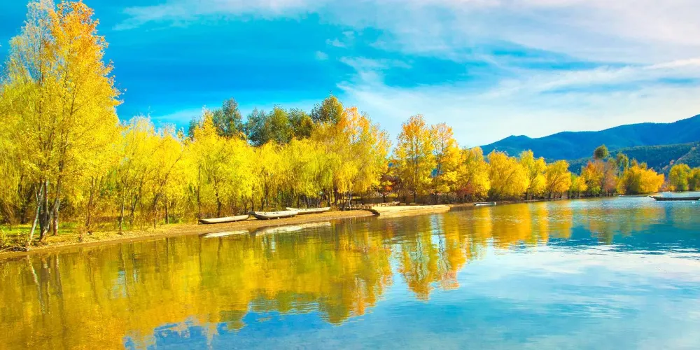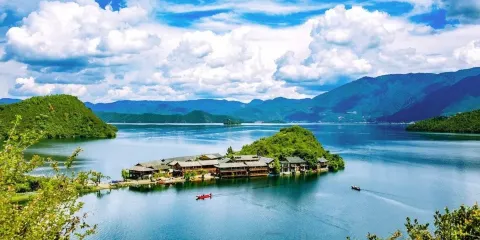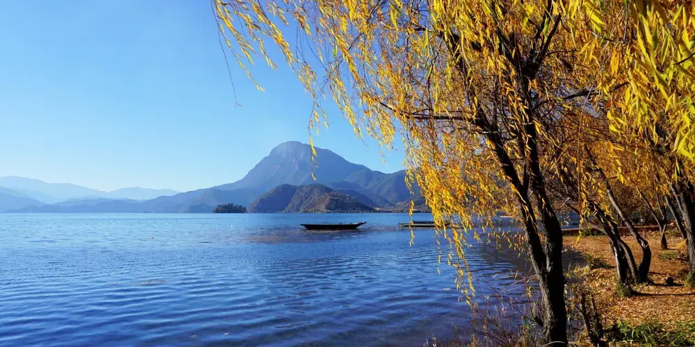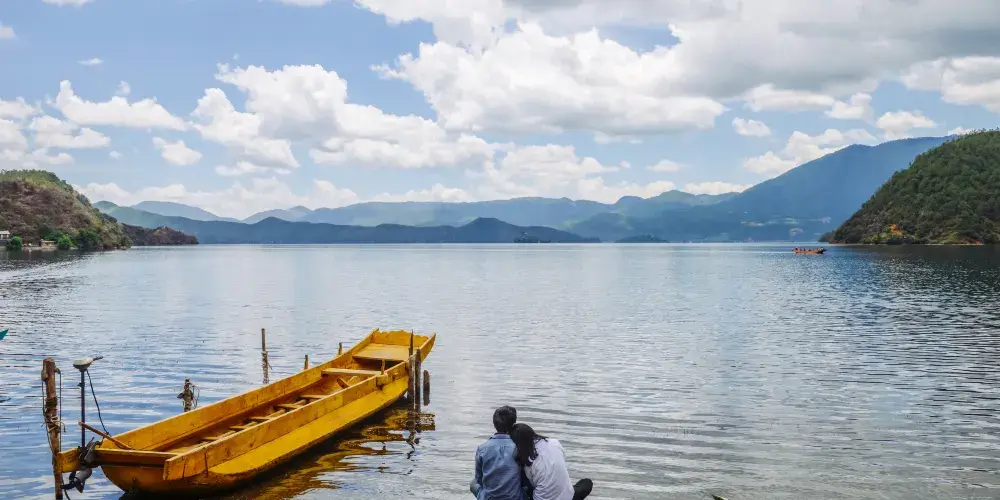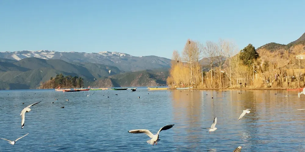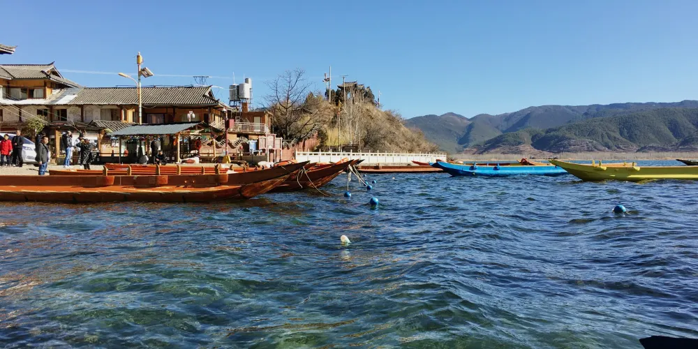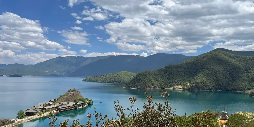 情人灘位於瀘沽湖景區內,是一大片坡地,延伸到湖裡成為水草密布的濕地。
