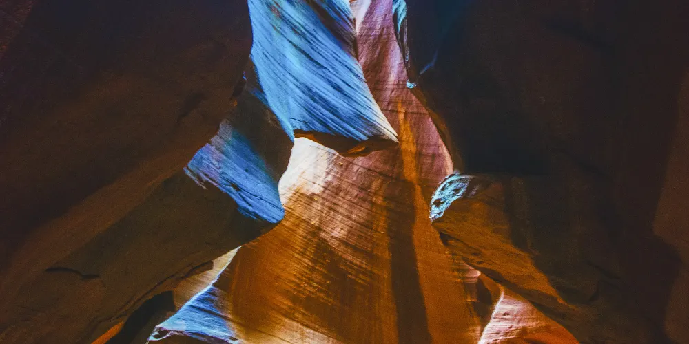 下羚羊谷是世界有名的狹縫型峽谷之一,位於美國亞利桑納州北方,屬於納瓦荷原住民保護區。谷中沒有人工照明,所有可見的光線均來自於峽谷頂部的裂縫,這些光線經過岩石紋理的反复折射進入谷底,產生不規則的色彩變化,五彩繽紛,非常漂亮。