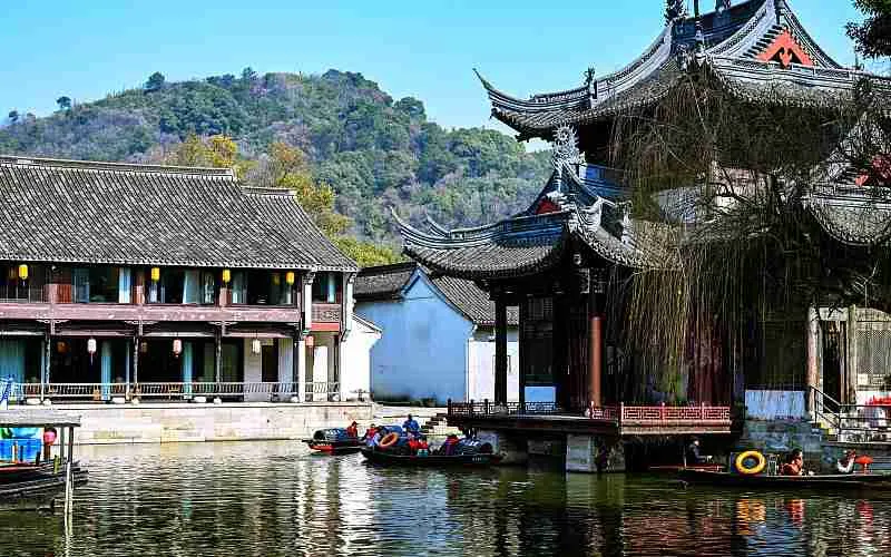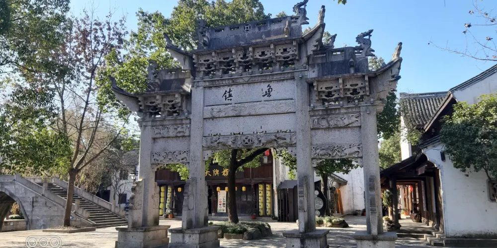 魯鎮位於紹興柯岩風景區內,是依照魯迅筆下的「魯鎮」還原的主題公園。在這裡你會看到許多熟悉的場景:魯家祠堂、奎文閣、阿Q棲身的土谷祠等等,可以一路走一路回憶作品中的橋段,是種特別的體驗。魯鎮被流水大致分為三部分,景區的入口,迎面是一座高大的石牌坊,上書「魯鎮「二字」,一旁是魯迅先生坐在藤椅上的銅像,頗有「橫眉冷對千夫指,俯首甘為孺子牛」的神韻,也是魯鎮的中軸線上係民俗風情街、雙面戲台,左手邊有趙府、土穀祠、奎文閣,右手邊則有靜修庵、百匾館、魯府(魯家花園)、魯家祠堂、當鋪、錢府(狂人府)等,各部分之間有小橋相連,河道中不時有烏篷船划過,頗有情趣。魯鎮不大,順著標識步行遊玩即可。首先來到的是民俗風情街,這裡是魯鎮繁華的地方,沿街有許多特色小店,售賣一些古玩玉器和烏氈帽之類的小玩意,街上還有遊客可以參與的「投球入樽」、「套圈」等紹興特色的遊戲,感興趣可以去玩一玩。風情街盡頭是魯鎮的中心,雙面戲台,遊客可以在這裡看社戲、品黃酒(社戲表演時間參考當日戲台附近的公告牌)。戲台往左來到阿Q的棲身之所土谷祠,再往裡走便是魯鎮較高的建築奎文閣,登上樓去,可以俯瞰魯鎮全景。過橋來到錢府,這裡按照《狂人日記》裡的情節,佈置了一個「吃人」而扭曲的環境,尤其是走進蠕洞裡,好像走進動物的腔腸內部,有種被封建禮教吞噬的即視感。從錢府開始往景區大門方向走,沿路是當舖、《祝福》中的魯家花園、阿Q調戲小尼姑的靜修庵等等,過靜修庵前的石板橋,便出了魯鎮的廣場了。除了這些建築,魯鎮街上穿著戲服扮演魯迅筆下角色的演員們也是魯鎮一道風景,阿Q油腔滑調地裝各種怪相,祥林嫂挎著討飯籃拄著竹竿在街上四處遊蕩……讓人感覺真的穿越進了魯迅的故事裡。遊客多時,他們就扮演起自己的角色,念起經典台詞來逗遊人開心,引得遊客紛紛掏出相機拍照。柯岩風景區有柯岩、魯鎮兩個入口,可以先遊玩魯鎮乘畫舫前往葫蘆酒島,然後去到柯岩景區看天工大佛。或者從柯岩進入景區,沿柯岩-鑑湖-魯鎮遊玩。