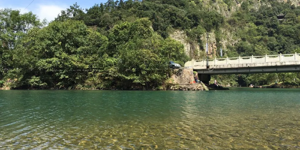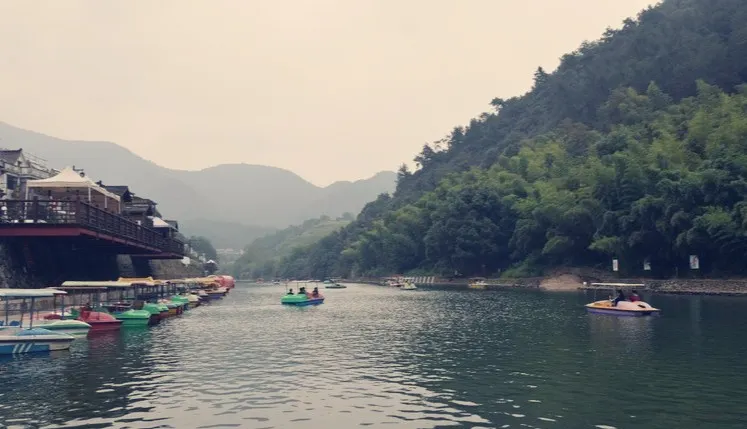 進入景區後,首先在遊客中心購票,旁邊就是乘船的碼頭。散客等船的時間比較長,一般40分鐘一班,除非正好碰上團隊,不願意等也可以坐快艇。在江上乘船的感覺很不錯,有點走進《富春山居圖》的感覺。